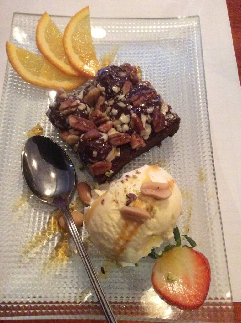 | 115. Brownie med is | Varm brownie med vanilje is, karamellsaus og salte peanøtter. Hot brownie with vanilla icecream, caramellsauce and salted peanuts. | 147.- | Gl, P, N, MI |